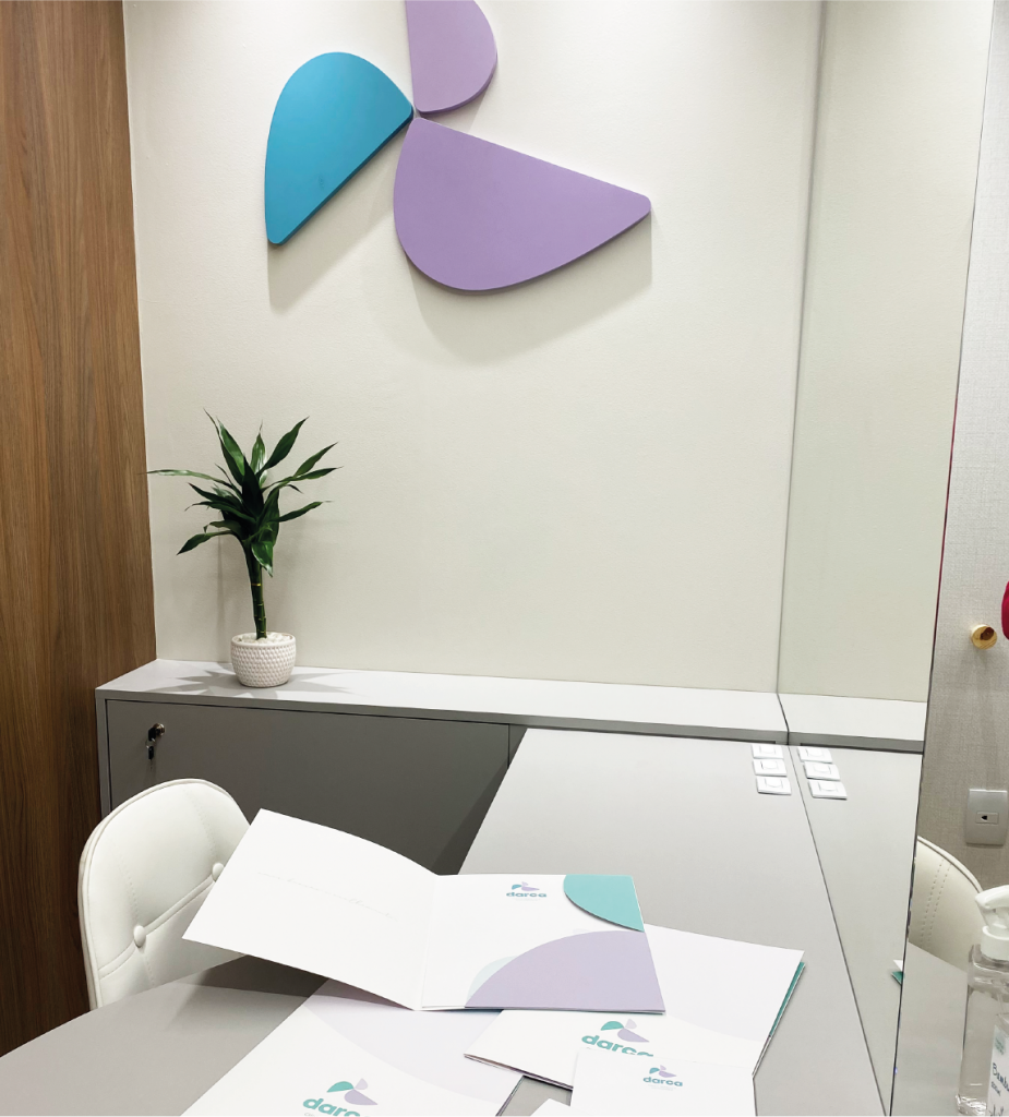 O nome Darca vem de doação e acolhimento, “arca”, ou “arco”, grande o suficiente para abrigar a todos. No símbolo formas orgânicas direcionam ao aconchego de um abraço, a conversa próxima e amorosa com os especialistas. O movimento do símbolo remete a diversão das brincadeira infantis do passado, onde linhas curvas fazem alusão ao movimento deste espaço.