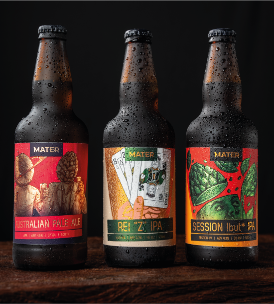 Os rótulos são elementos essenciais na comunicação entre produtos e consumidores. As informações contidas neles devem ser claras, orientando a escolha adequada dos produtos. Neste projeto desenvolvemos os rótulos das cervejas Australian Pale Ale, Rei “Z” IPA e Session !but* IPA da Cervejaria Mater.